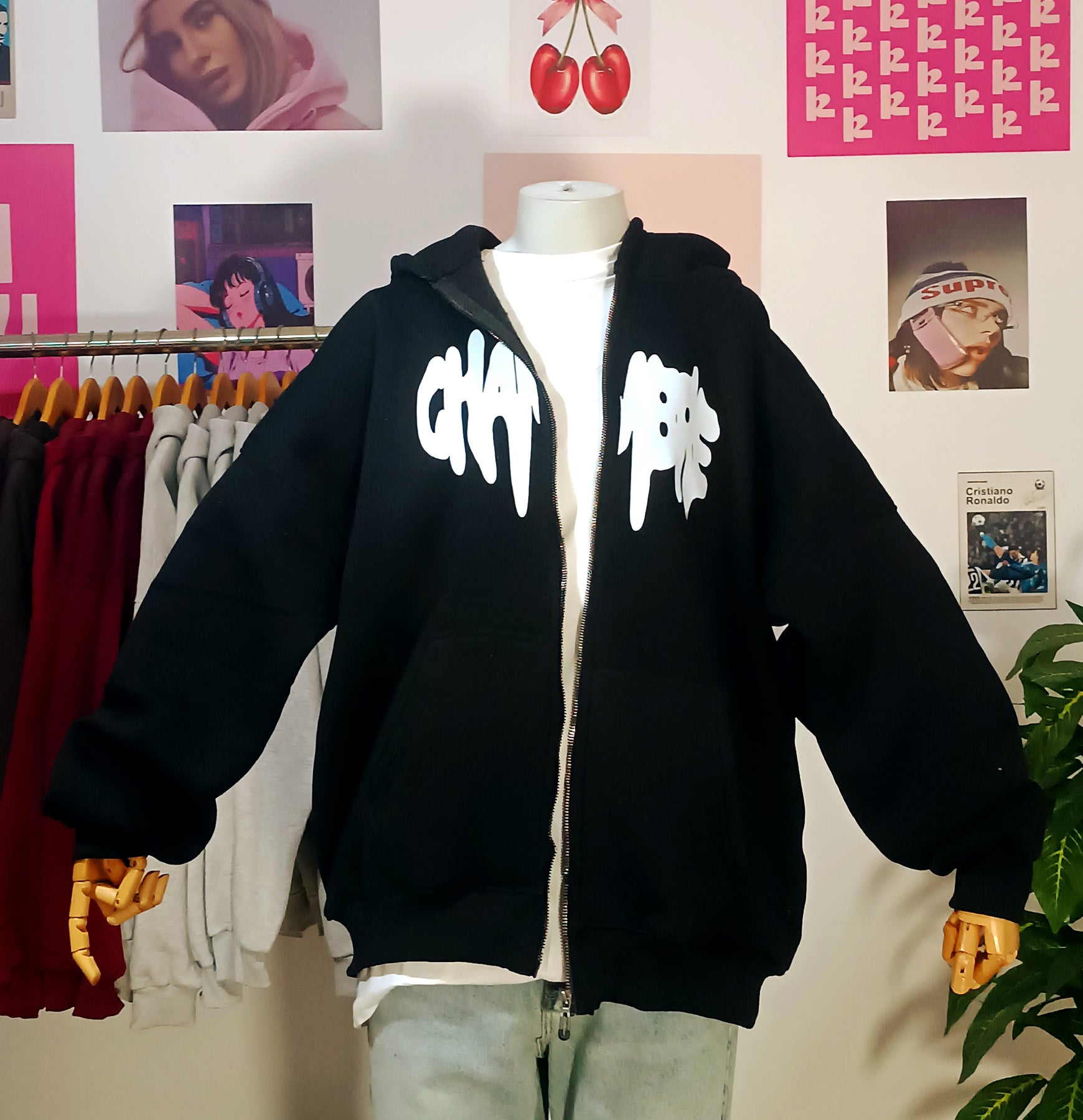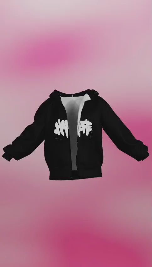 Graffiti Drip Zipper Hoodie - Black