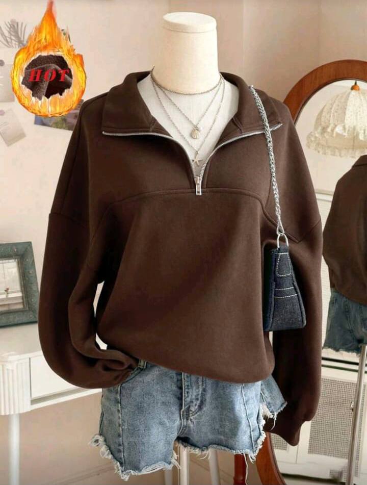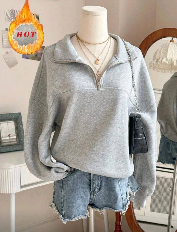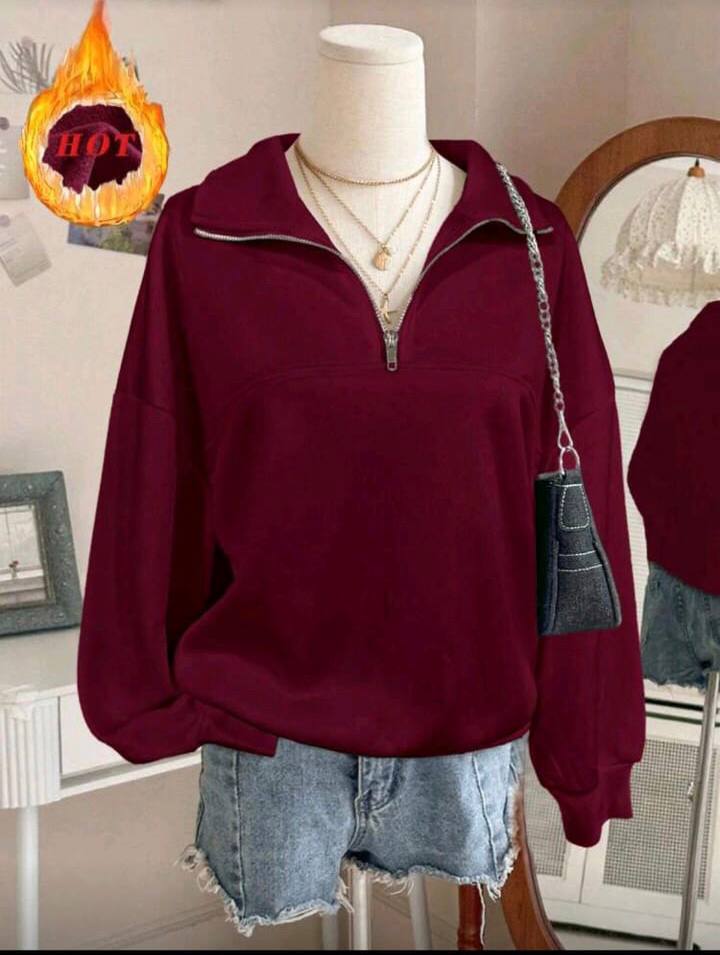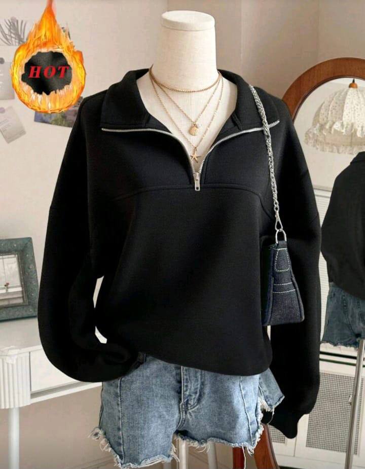 • Design: A stylish half-zip pullover construction with a unique wide-collar look for a modern, feminine streetwear aesthetic.